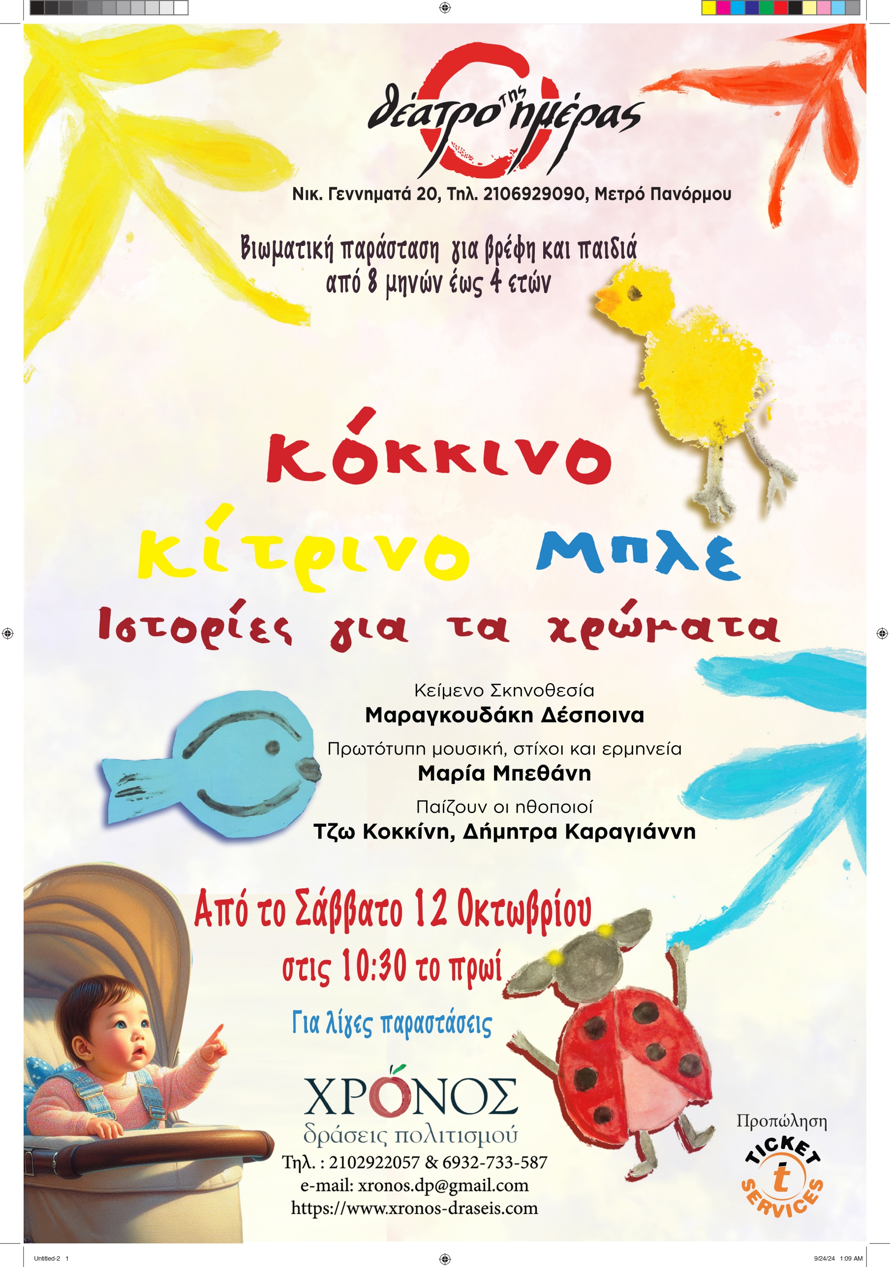 ΗΛΕΚΤΡΟΝΙΚΗ ΠΡΟΠΩΛΗΣΗ: https://www.ticketservices.gr/event/theatro-imeras-kokkino-kitrino-ble/