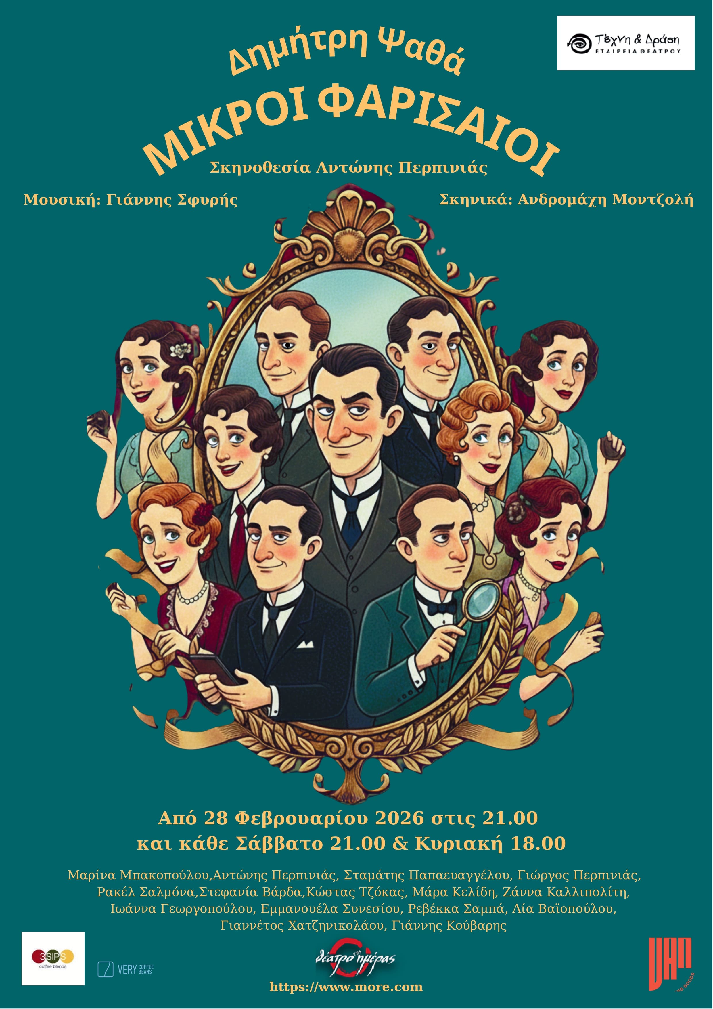 Όταν διαβάσαμε ξανά «Τους Μικρούς Φαρισαίους», νιώσαμε αμηχανία. Όχι για τη γλώσσα του Ψαθά – που παραμένει γοητευτική και σπαρταριστή – αλλά γιατί, πίσω από την κωμωδία, αντικρίσαμε μια εικόνα εξαιρετικά οικεία. Ηθικολόγοι που «καθοδηγούν» την κοινωνία, ενώ την ίδια στιγμή διαχειρίζονται ιδιοτελώς την εξουσία και τις σχέσεις τους. Ένας κόσμος που ξέρει να κρύβεται πίσω από θεσμούς, αξιώματα και χαμόγελα.