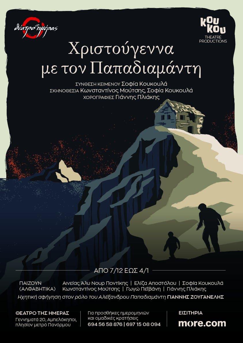 Η Σοφία Κουκουλά, φέτος τα Χριστούγεννα, θα φέρει στη σκηνή του Θεάτρου της Ημέρας, τους αλλοτινούς κόσμους του Αλέξανδρου Παπαδιαμάντη, δραματοποιώντας μερικά από τα πιο γνωστά χριστουγεννιάτικα διηγήματά του. Η Σκιάθος, που τόσο αγάπησε ο άγιος των γραμμάτων μας, χρησιμοποιείται ως κοινός τόπος των ηρώων, αυτού του έργου, και έτσι, μέσα από τις χριστουγεννιάτικες ιστορίες τους, οι θεατές θα γίνουν κοινωνοί των ηθών, εθίμων και των μυρωδιών ακόμα ακόμα, μιας Ελλάδας τόσο μακρινής αλλά και τόσο δικιάς μας, πια.